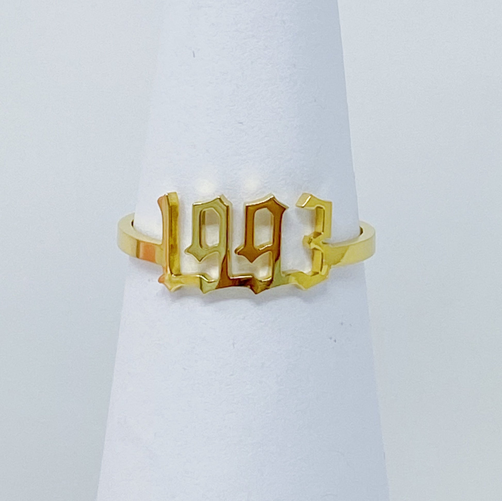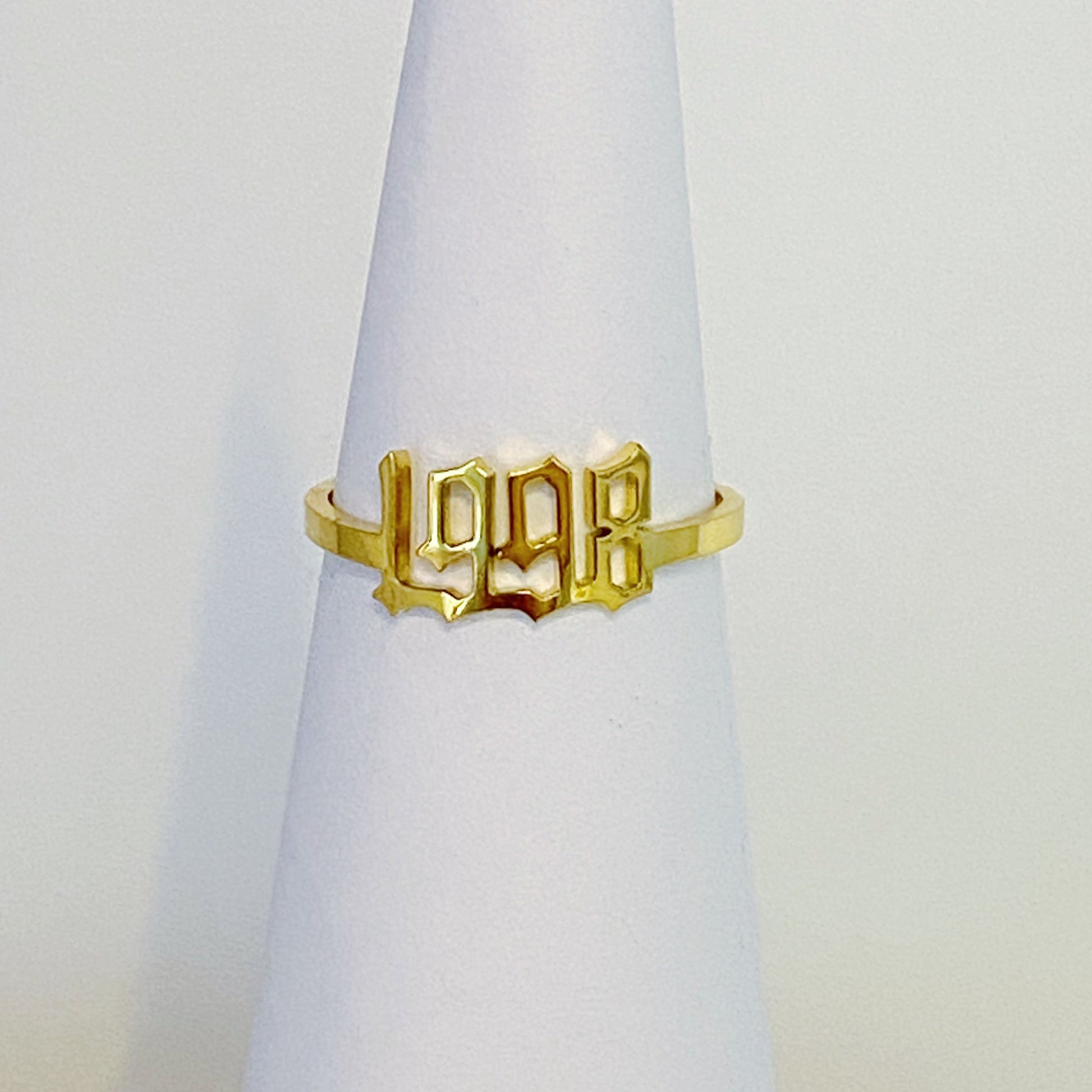Anillo con fuente inglesa antigua del año 1993-2003. Ideal para combinar con otros anillos. Su forma delgada hace que el anillo luzca bien en cualquier dedo y combine con cualquier estilo.