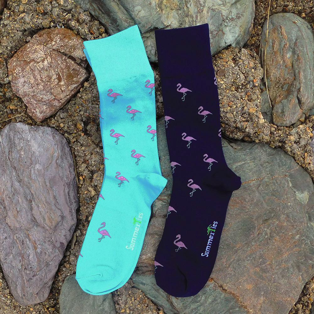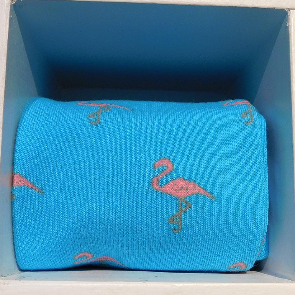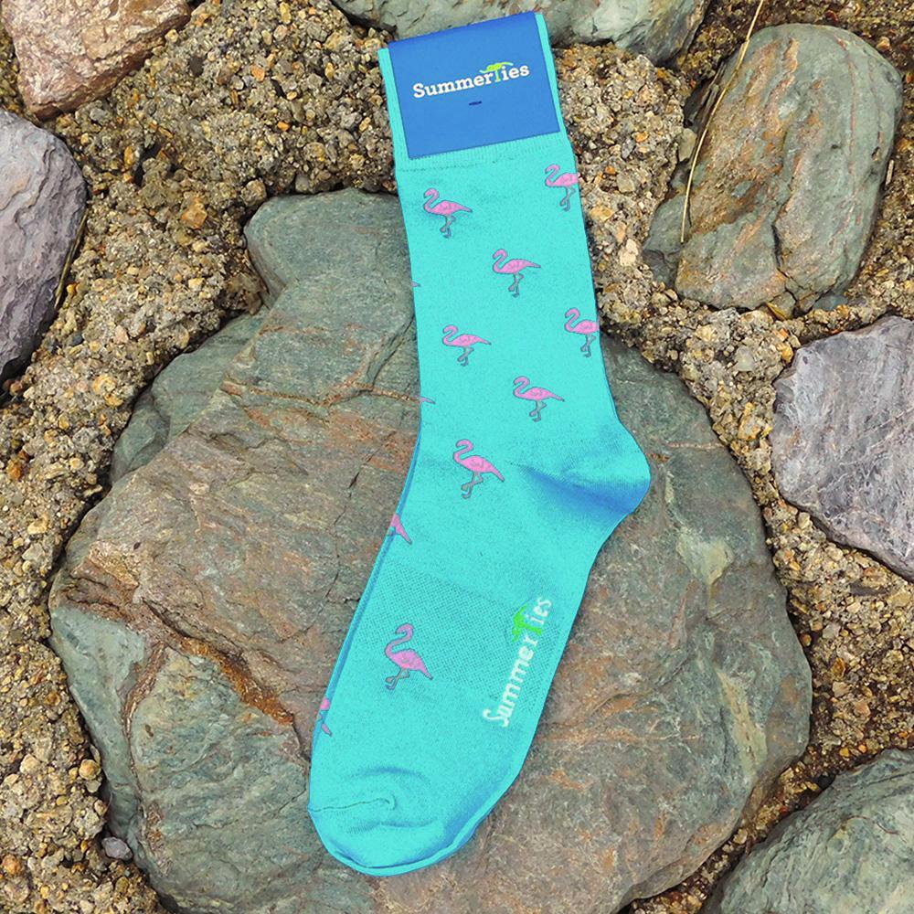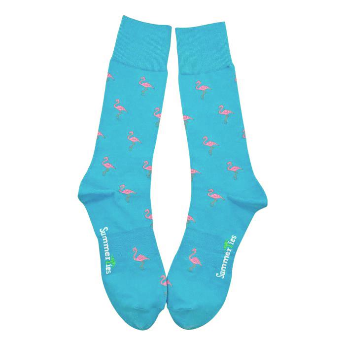 Calcetines Flamingo - Media pantorrilla para hombre - Rosa sobre azul agua