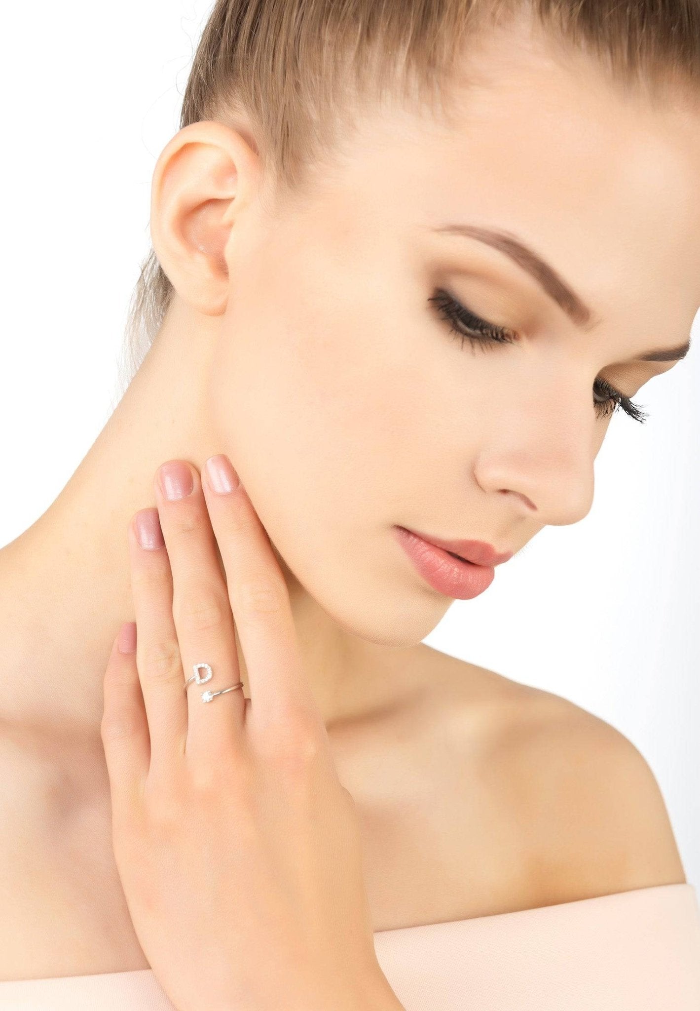 This simple but beautifully styled initial letter ring is perfect for those who covet delicate jewellery with a hint of sparkle offering a sophisticated finishing touch to any outfit.