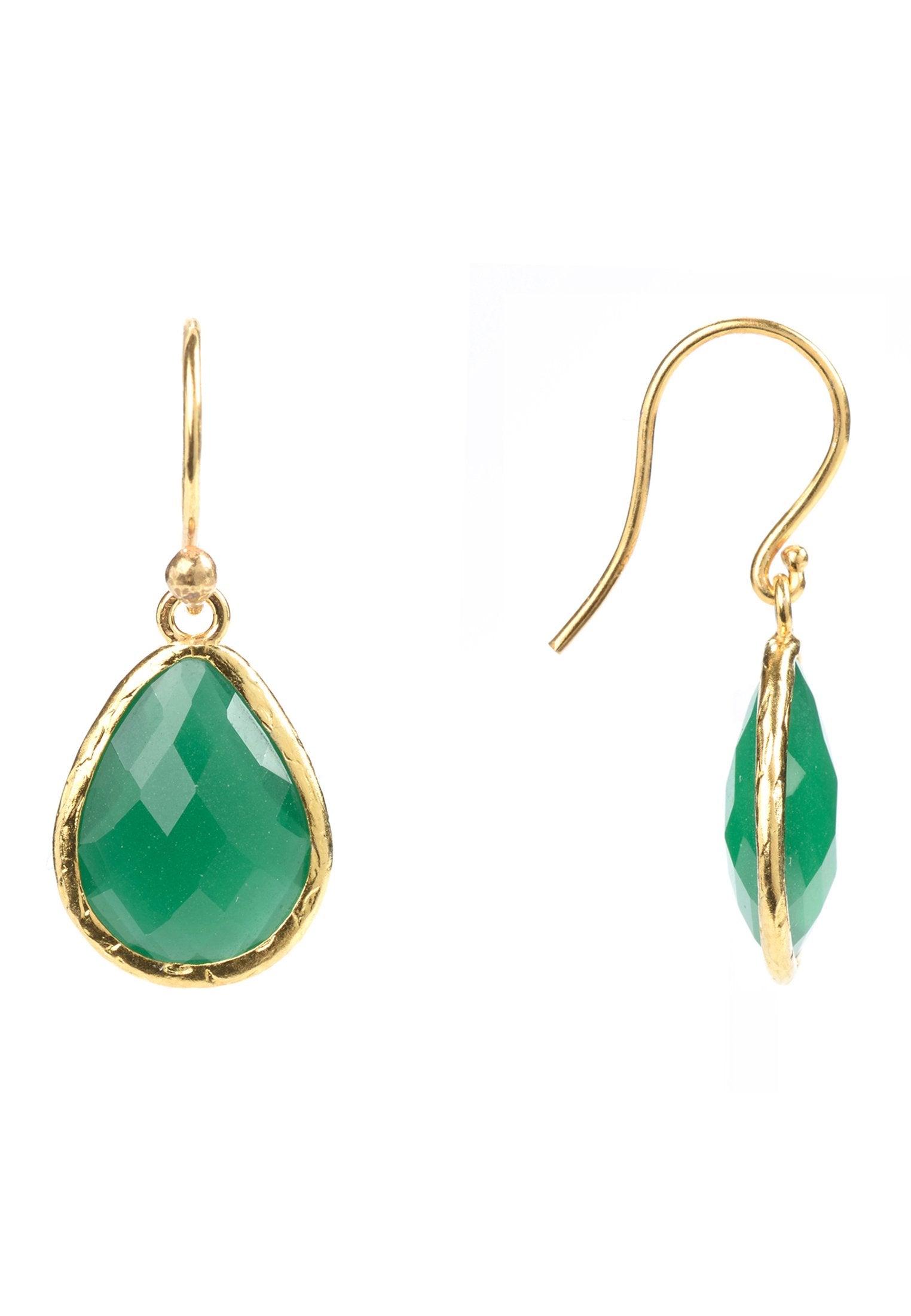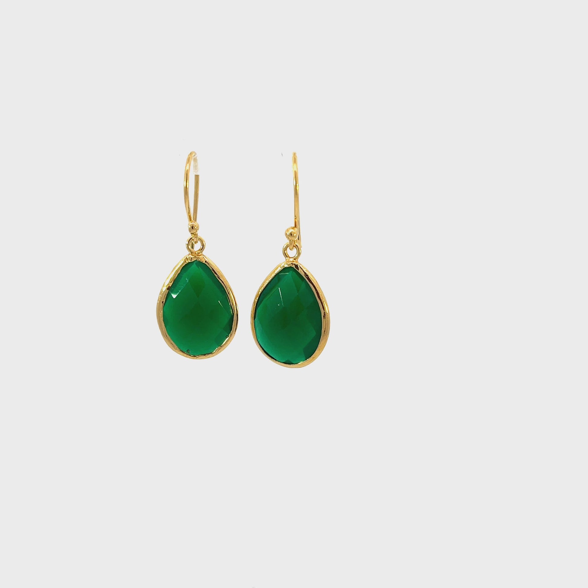 The classic teardrop shape is adorned with a beautiful green onyx gemstone, making them perfect for adding a pop of colour to any outfit. Whether you're dressing up for a special occasion or simply want to elevate your everyday style, these earrings will do the trick.