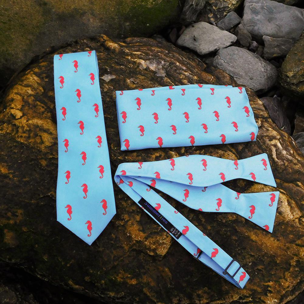 El caballito de mar es una especie única en el reino animal en la que el macho tiene las crías. Con esa idea en mente, creamos nuestro estampado de caballito de mar. Tanto si eres una mujer moderna y orgullosa como si estás intentando atraer a una, celebra la libertad de la feminidad con esta pajarita rosa y azul fuerte, porque, cuando eres un caballito de mar, todas las noches son noches de chicas.