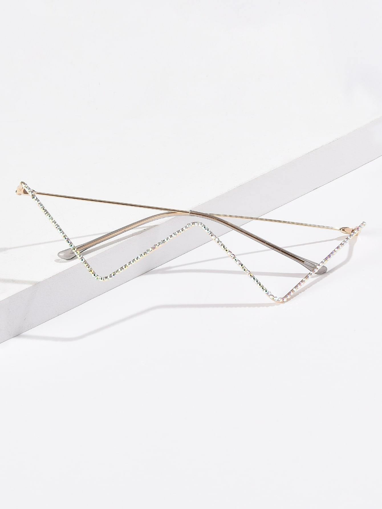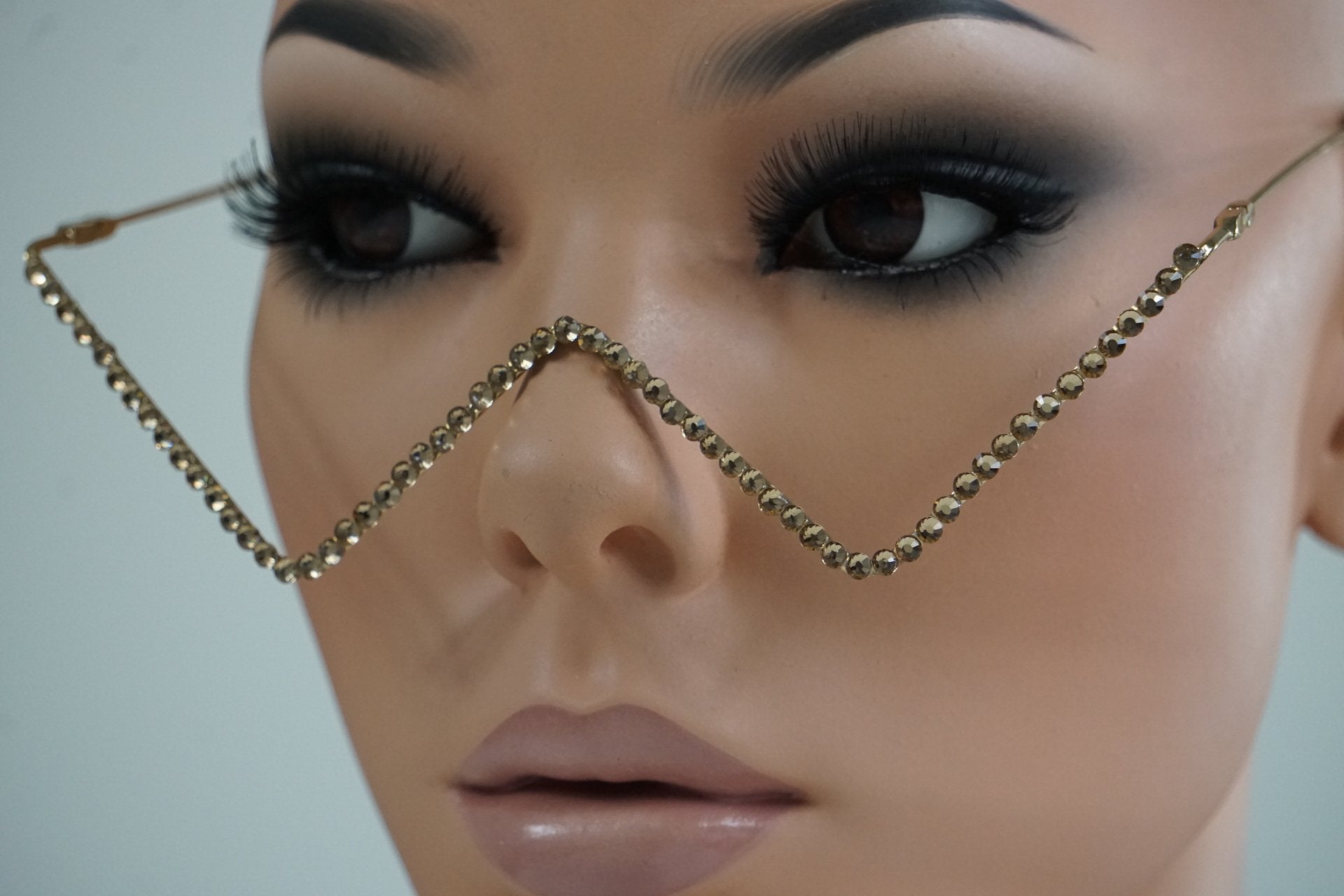 - Features: Lensless, faux diamonds with gold frames, comfortable and secure fit.