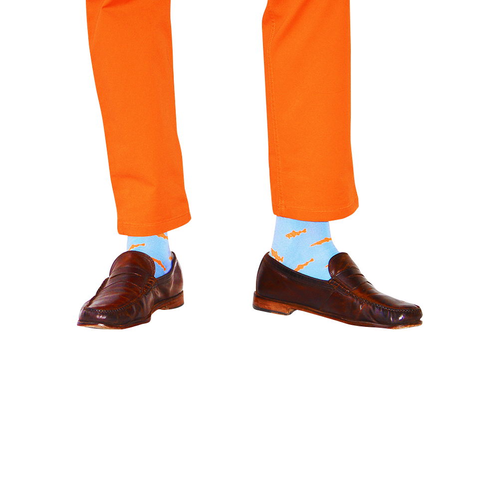 Calcetines Trout - Naranja sobre azul claro - Media pantorrilla para hombre