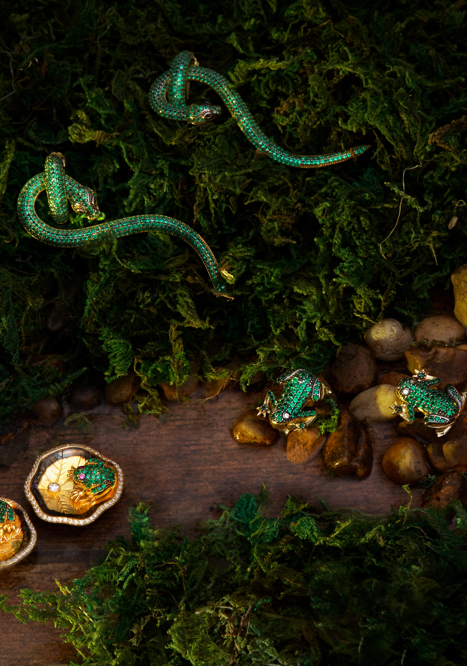 Anaconda Snake Drop Earrings Gold Emerald