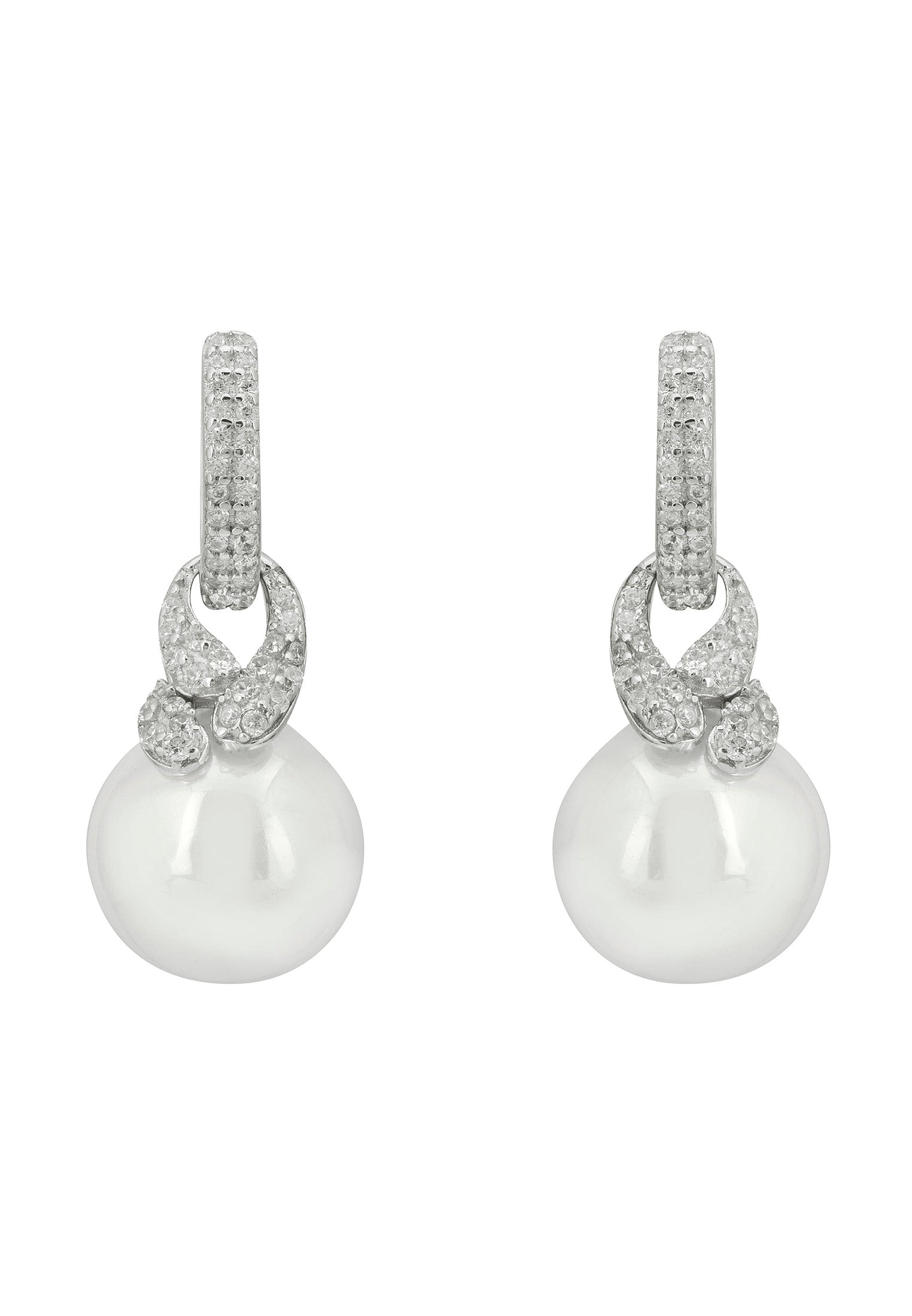 Introducing the Tie The Knot Drop Pearl Earrings in sleek sterling silver – a symbol of unending love and commitment. Crafted from 925 sterling silver, these earrings captivate with their shimmering cubic zirconia-adorned hoop and the delicate knot design at the base, each reflecting the light beautifully. Suspended from this intricate knot is a pearl, embodying serenity and the timeless beauty of nature.