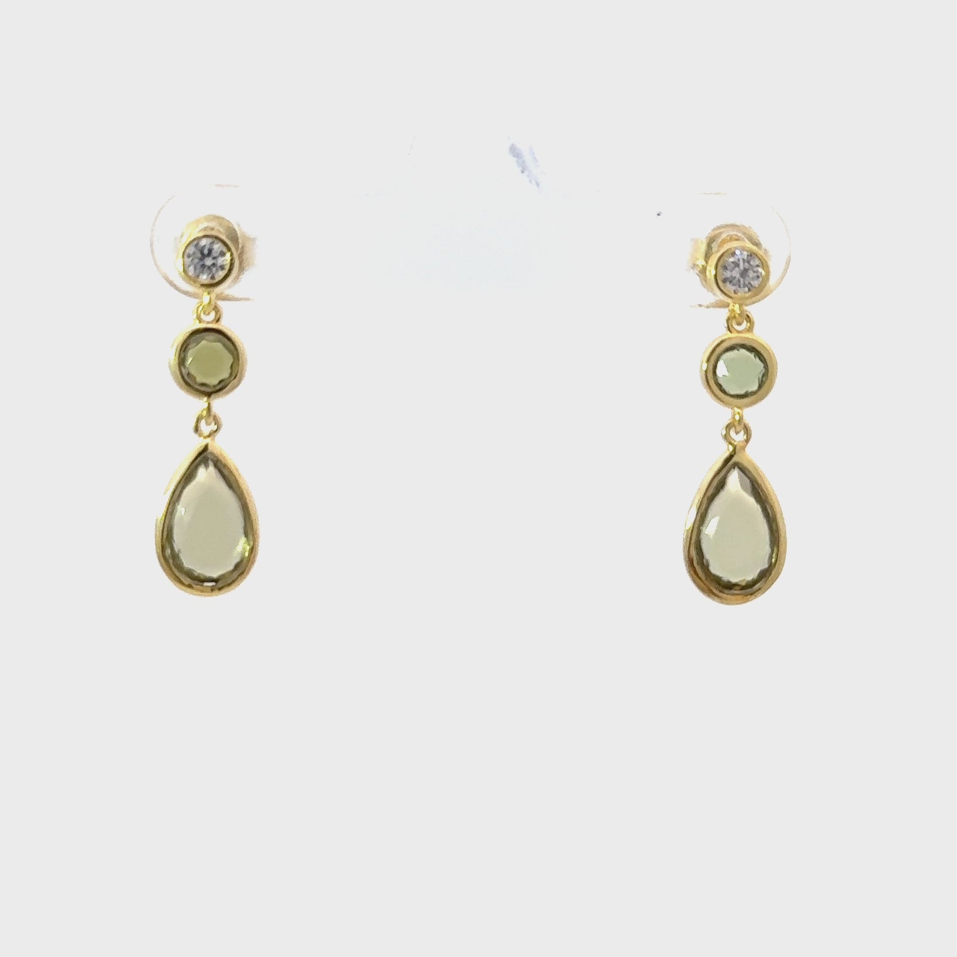 Our Tuscany Gemstone Drop Earrings are crafted from 925 sterling silver, dipped in 22ct gold and set with peridot and cubic zirconia gems. With a width of 6mm and length of 2.5cm they weigh just 2 grams, making them light on your lobes but high impact in terms of style.