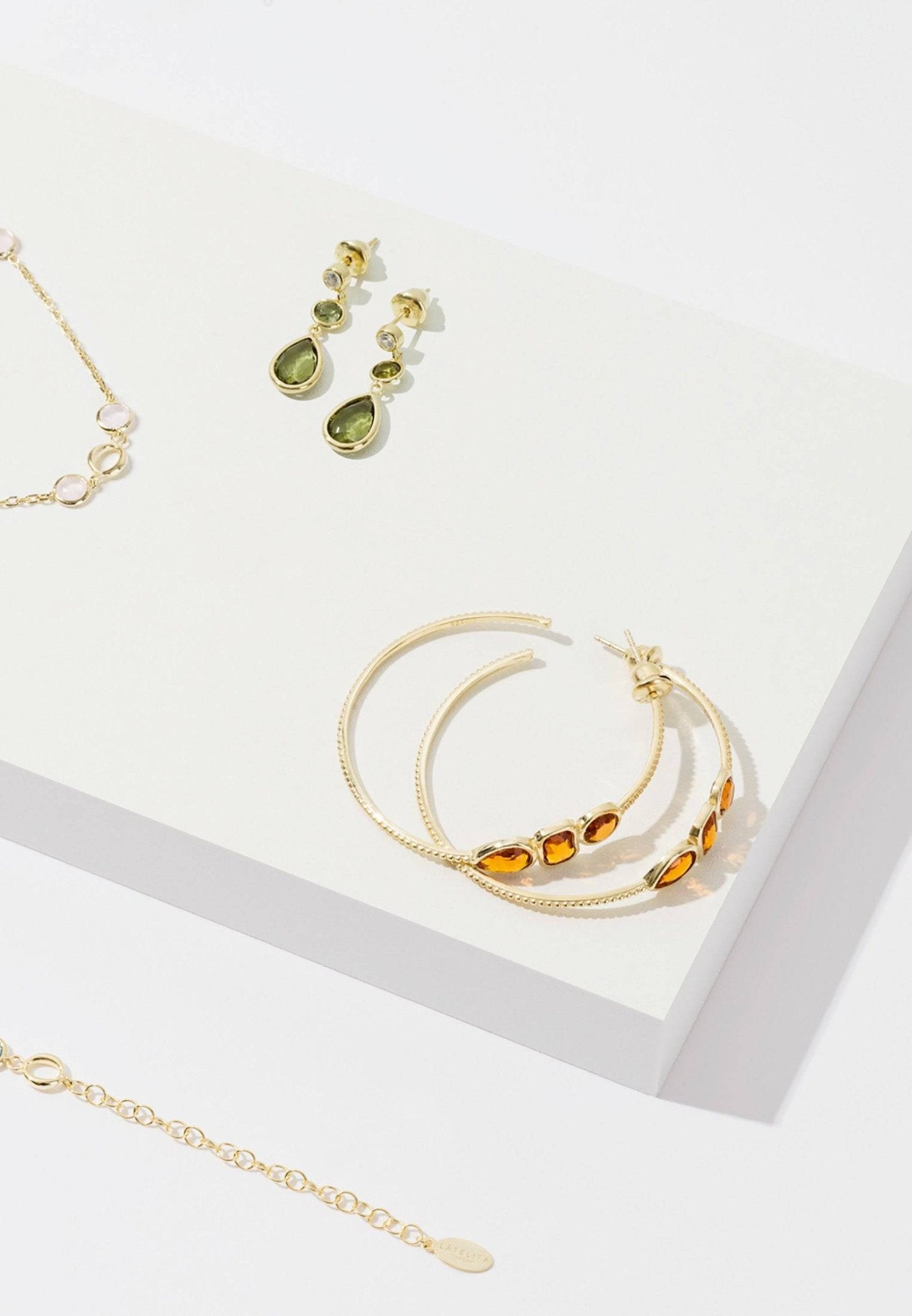 Introducing our Tuscany Gemstone Drop Earring, the perfect accessory for anyone who loves subtle yet luxurious jewellery. Delicate circular and teardrop shaped gemstones are combined with a small sparkling cubic zirconia top to give natural movement for a truly indulgent earring.