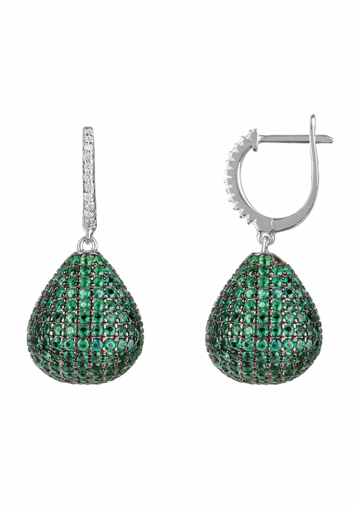 Valerie Pear Drop Gemstone Earrings Silver Emerald