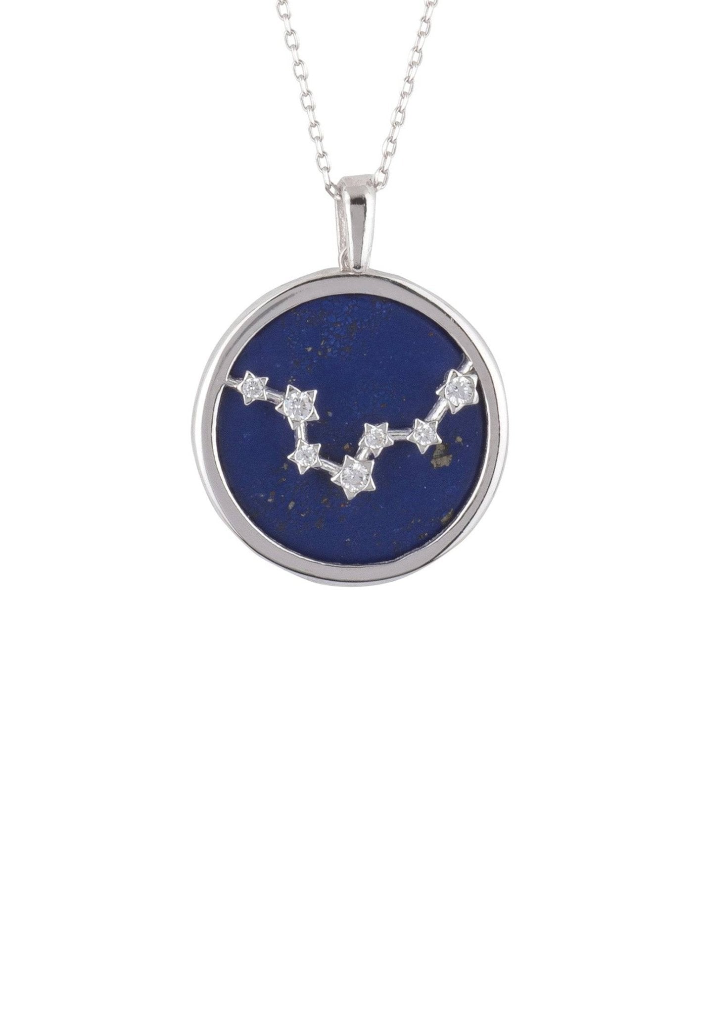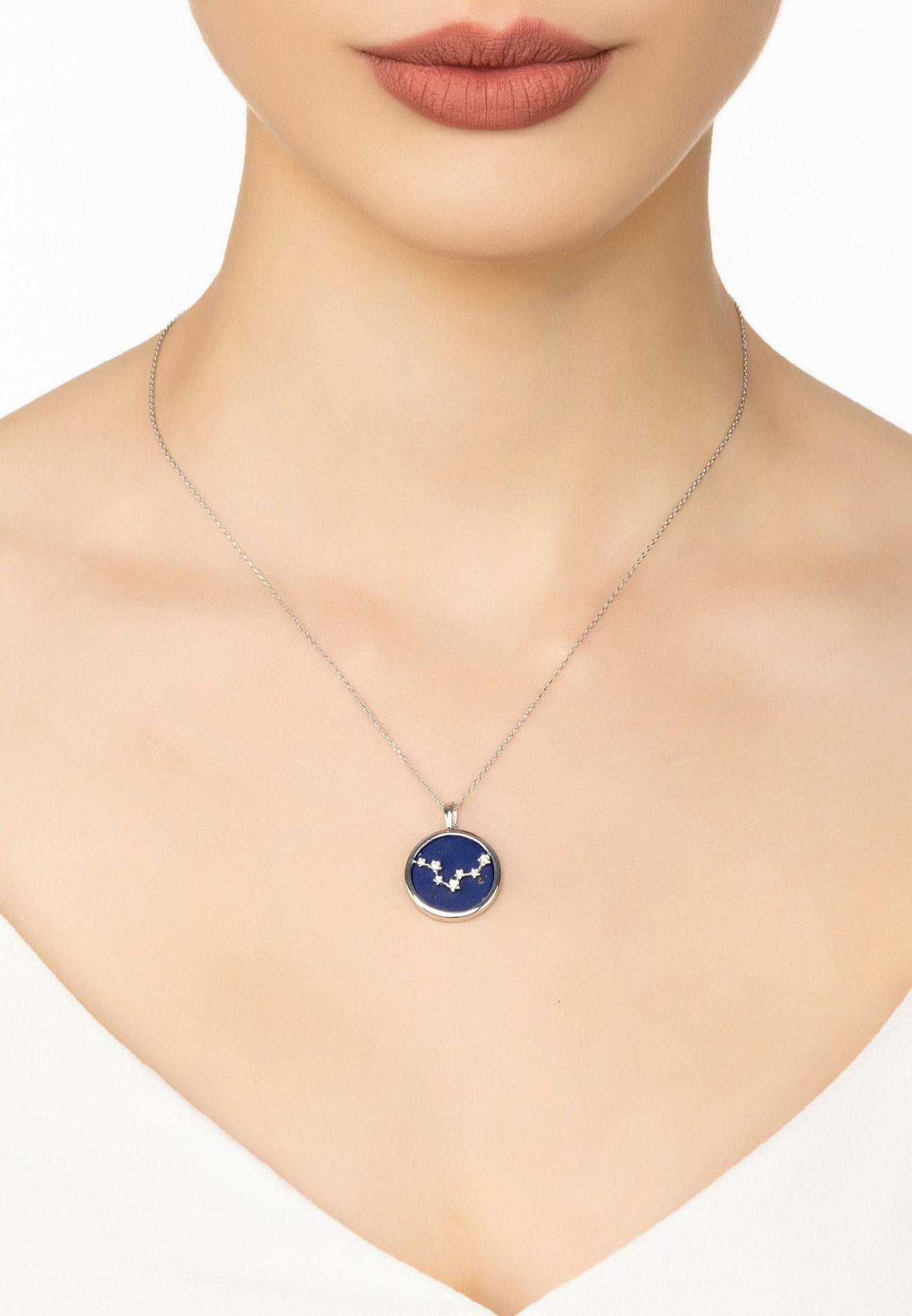 Zodiac Lapis Lazuli Gemstone Star Constellation Pendant Necklace Silver Pisces
