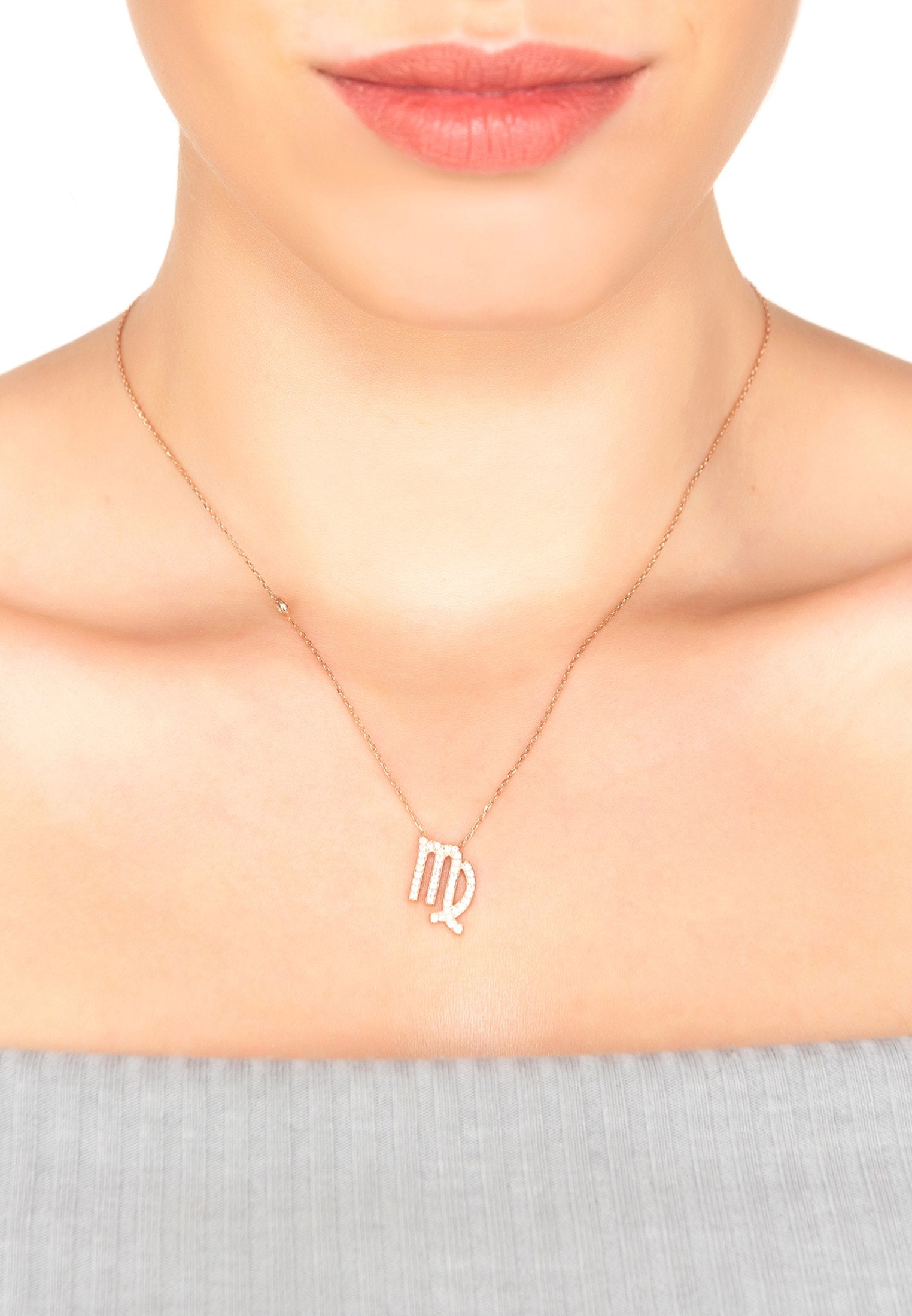 Zodiac Star Sign Pendant Necklace Rose Gold Virgo